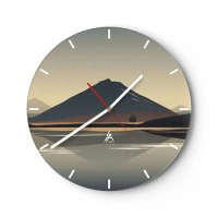 Wanduhr - Glasuhr - Ein Berg über einem See in Pastelllicht mit Spiegelung im Wasser - 30x30cm - Spiegelreflexion - Moderne Wanddekoration für Wohnzimmer, Küche und Schlafzimmer ARTTOR