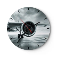 Wanduhr - Glasuhr - Blick auf das Triebwerk eines Passagierflugzeugs auf der Landebahn des Flughafens - 30x30cm - Die Macht ist da! - Moderne Wanddekoration für Wohnzimmer, Küche und Schlafzimmer ARTTOR