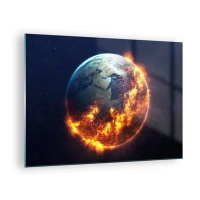 Glasbild - Bild auf glas - Erde im Weltraum von Flammen umgeben - 70x50cm - Die Flamme der Apokalypse - Moderne Wanddekoration für Wohnzimmer und Schlafzimmer ARTTOR