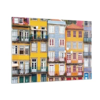 Glasbild - Bild auf glas - Bunte Fassaden von Mietshäusern mit Balkondetails - 100x70cm - Farben der Altstadt - Moderne Wanddekoration für Wohnzimmer und Schlafzimmer ARTTOR