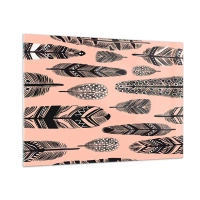 Glasbild - Bild auf glas - Dekorative Federn mit schwarz-weißem Muster auf rosa Hintergrund - 100x70cm - Indische Sammlung - Moderne Wanddekoration für Wohnzimmer und Schlafzimmer ARTTOR