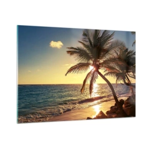 Glasbild - Bild auf glas - Tropischer Strand mit Palmen im Licht der untergehenden Sonne - 100x70cm - Sommer unter Palmen - Moderne Wanddekoration für Wohnzimmer und Schlafzimmer ARTTOR