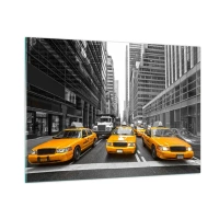 Glasbild - Bild auf glas - Gelbe Taxis auf den Straßen von New York - 100x70cm - Wir färben die Stadt - Moderne Wanddekoration für Wohnzimmer und Schlafzimmer ARTTOR