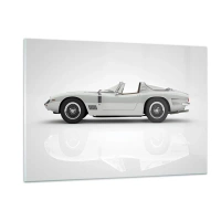 Glasbild - Bild auf glas - Ein klassisches weißes Cabrio vor minimalistischem Hintergrund mit Reflexionen. - 120x80cm - Spaß versprochen - Moderne Wanddekoration für Wohnzimmer und Schlafzimmer ARTTOR