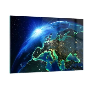 Glasbild - Bild auf glas - Blick auf die Erde aus dem Weltraum mit dem nachts leuchtenden Europa - 120x80cm - Funkelndes Europa - Moderne Wanddekoration für Wohnzimmer und Schlafzimmer ARTTOR