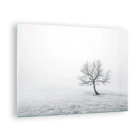 Glasbild - Bild auf glas - Ein einsamer Baum vor dem Nebel in einer monochromen Komposition - 70x50cm - Gegen das Nichts - Moderne Wanddekoration für Wohnzimmer und Schlafzimmer ARTTOR