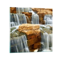 Glasbild - Bild auf glas - Ein Wasserfall, der Steinstufen hinunterfließt - 70x100cm - Treppe zum Himmel - Moderne Wanddekoration für Wohnzimmer und Schlafzimmer ARTTOR