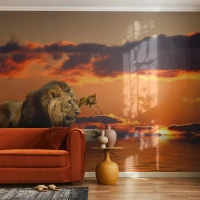 Maßgeschneiderte Fototapete Premium Sand - König der Natur - Löwe, Sonnenuntergang, Tiere