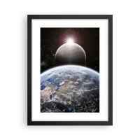 Poster in einem schwarzem Rahmen - Weltraumlandschaft - Sonnenaufgang - 30x40 cm