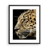 Glasbild - Bild auf glas - Profil eines Leoparden auf schwarzem Hintergrund - 100x70cm - Ruhig, fokussiert, bereit - Moderne Wanddekoration für Wohnzimmer und Schlafzimmer ARTTOR