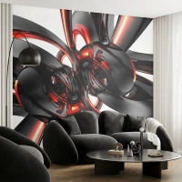 Fototapete Standard Eco - Abstrakte schwarze Formen mit roten Akzenten - 100x70cm - Uhrwerk in Graphit und Rot - Moderne Wanddekoration für Wohnzimmer und Schlafzimmer ARTTOR
