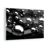 Glasbild - Bild auf glas - Metallische Tropfen auf einer schwarzen Oberfläche - 70x50cm - Aus der schwarzen Wassertiefe - Moderne Wanddekoration für Wohnzimmer und Schlafzimmer ARTTOR