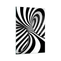 Glasbild - Bild auf glas - Abstrakter Tunnel mit schwarz-weißen Spiralstreifen - 70x100cm - Komposition: Tanzraum - Moderne Wanddekoration für Wohnzimmer und Schlafzimmer ARTTOR