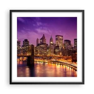 Poster in einem schwarzem Rahmen - Violett-goldenes Manhathann - 50x50 cm