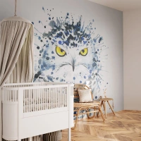 Maßgeschneiderte Fototapete Premium Sand - Direkt in die Augen - Vogel, Eule, Tiere
