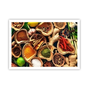 Poster - Schalen mit Gewürzen in verschiedenen Farben - 100x70cm - Nimm was du willst - Moderne Wanddekoration für Wohnzimmer und Schlafzimmer ARTTOR