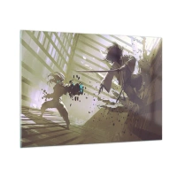 Glasbild - Bild auf glas - Samurai-Duell in einer dynamischen Szene - 100x70cm - Und du kannst ein Samurai sein - Moderne Wanddekoration für Wohnzimmer und Schlafzimmer ARTTOR