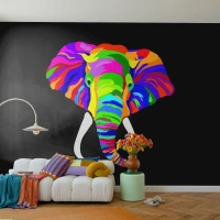 Fototapete Standard Eco - Der Elefant, der es liebte, im Regenbogen zu baden - Tiere, Elefant, Buntes Bild - 250x175 cm