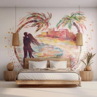 Fototapete Standard Eco - Romantisches Paar am Strand im Aquarellstil - 100x70cm - Romantischer Urlaub - Moderne Wanddekoration für Wohnzimmer und Schlafzimmer ARTTOR