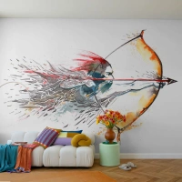 Fototapete Standard Eco - Bogenschütze in einer dynamischen Aquarellillustration - 100x70cm - Mythischer Krieger mit feurigem Bogen - Moderne Wanddekoration für Wohnzimmer und Schlafzimmer ARTTOR