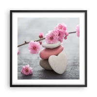Poster in einem schwarzem Rahmen - Glückseligkeit mit einer Kirschblüte - 50x50 cm