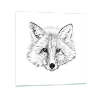 Wanduhr - Glasuhr - Schwarz-weiße Zeichnung eines Fuchskopfes auf weißem Hintergrund - 30x30cm - Können diese Augen lügen? - Moderne Wanddekoration für Wohnzimmer und Schlafzimmer ARTTOR
