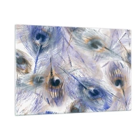 Glasbild - Bild auf glas - Zarte Pfauenfedern in Blau- und Brauntönen - 120x80cm - Pfau-Komposition - Moderne Wanddekoration für Wohnzimmer und Schlafzimmer ARTTOR