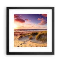 Wanduhr - Glasuhr - Ein Strand mit Dünen und einem goldenen Sonnenuntergang über einem ruhigen Meer - 30x30cm - Die Luft riecht schon im Sommer - Moderne Wanddekoration für Wohnzimmer, Küche und Schlafzimmer ARTTOR