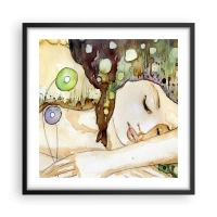 Poster in einem schwarzem Rahmen - Ein smaragd-violetter Traum - 50x50 cm