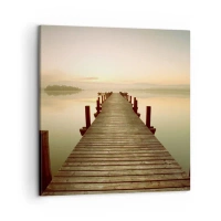 Bild auf Leinwand - Leinwandbild - Ein Holzsteg an einem ruhigen See am Morgen - 70x100cm - Tagesanbruch, Morgendämmerung, Licht - Moderne Wanddekoration für Wohnzimmer und Schlafzimmer ARTTOR