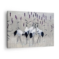 Glasbild - Bild auf glas - Vier Kraniche im Schilf am See - 70x50cm - Unter ihren eigenen - Moderne Wanddekoration für Wohnzimmer und Schlafzimmer ARTTOR