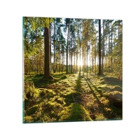 Glasbild - Bild auf glas - Grüner Wald, beleuchtet durch Sonnenlicht auf dem Moos - 70x100cm - … Hinter den sieben Wäldern - Moderne Wanddekoration für Wohnzimmer und Schlafzimmer ARTTOR