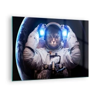 Glasbild - Bild auf glas - Ein katzenköpfiger Kosmonaut im Weltraum - 70x50cm - Houston, du hast ein Problem - Moderne Wanddekoration für Wohnzimmer und Schlafzimmer ARTTOR