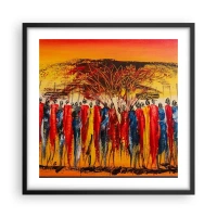 Glasbild - Bild auf glas - Eine farbenfrohe Szene mit Menschen in traditionellen afrikanischen Kostümen - 120x80cm - Dort, dort, dort gehen sie - Moderne Wanddekoration für Wohnzimmer und Schlafzimmer ARTTOR