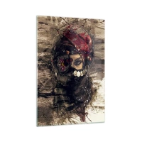 Glasbild - Bild auf glas - Künstlerisches Porträt einer Frau in orientalischer Kleidung vor abstraktem Hintergrund. - 70x100cm - Gelinde gesagt besorgniserregend - Moderne Wanddekoration für Wohnzimmer und Schlafzimmer ARTTOR