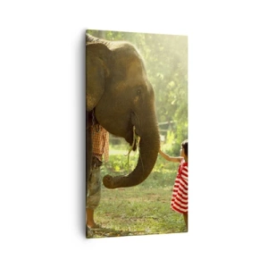 Fototapete Premium Canvas - Die Stärke der Freundschaft - Tiere, Elefant, Mädchen - 150x105 cm
