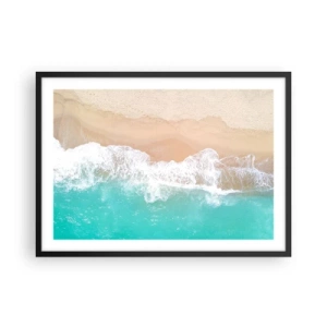 Poster in einem schwarzem Rahmen - Eine Vogelperspektive auf einen Strand mit türkisfarbenem Wasser und sanften Wellen - 70x50cm - Eine streichelnde Berührung - Moderne Wanddekoration für Wohnzimmer und Schlafzimmer ARTTOR