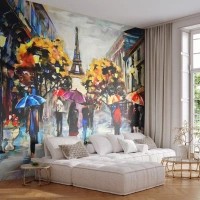 Fototapete Standard Eco - Herbstliches Paris im Regen mit bunten Regenschirmen - 100x70cm - Besonders schön im Herbst - Moderne Wanddekoration für Wohnzimmer und Schlafzimmer ARTTOR