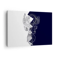 Glasbild - Bild auf glas - Geometrische Zeichnung eines Hirsches auf schwarz-weißem Hintergrund - 70x50cm - Der Kampf und die Einheit der Gegensätze - Moderne Wanddekoration für Wohnzimmer und Schlafzimmer ARTTOR