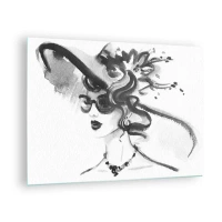 Glasbild - Bild auf glas - Schwarz-Weiß-Porträt einer Frau mit Hut - 70x50cm - Eine Dame mit Charakter - Moderne Wanddekoration für Wohnzimmer und Schlafzimmer ARTTOR