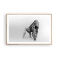Bild auf Leinwand - Leinwandbild - Gorilla in monochromen Tönen auf weißem Hintergrund - 70x100cm - Zuversichtlich in seiner Stärke - Moderne Wanddekoration für Wohnzimmer und Schlafzimmer ARTTOR