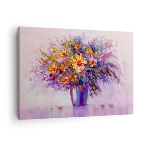 Bild auf Leinwand - Leinwandbild - Ein Blumenstrauß in einer Vase auf pastellfarbenem Hintergrund - 120x80cm - Es riecht süß, sieht süß aus - Moderne Wanddekoration für Wohnzimmer und Schlafzimmer ARTTOR