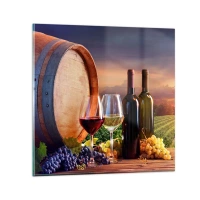 Wanduhr - Glasuhr - Wein, Gläser und ein Fass vor der Kulisse der untergehenden Sonne - 30x30cm - Hier schmeckt das Leben - Moderne Wanddekoration für Wohnzimmer, Küche und Schlafzimmer ARTTOR