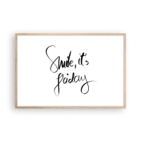 Glasbild - Bild auf glas - Schwarz-weißer Schriftzug Smile, it's Friday - 70x100cm - Echte Freude - Moderne Wanddekoration für Wohnzimmer und Schlafzimmer ARTTOR