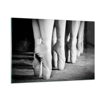 Glasbild - Bild auf glas - Ballerinas auf Spitze in schwarz-weißer Umgebung - 120x80cm - Gemeinsam, leicht - Moderne Wanddekoration für Wohnzimmer und Schlafzimmer ARTTOR