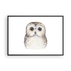 Poster in einem schwarzem Rahmen - Porträt einer Eule auf hellem Hintergrund mit zarten Farben - 100x70cm - Schau mir in die Augen - Moderne Wanddekoration für Wohnzimmer und Schlafzimmer ARTTOR