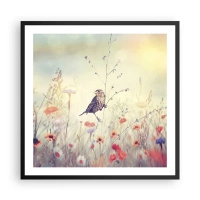 Poster in einem schwarzem Rahmen - Vogelporträt mit einer Wiese im Hintergrund - 60x60 cm