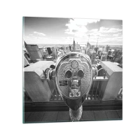 Wanduhr - Glasuhr - Fernglas mit Blick auf die Skyline von New York - 30x30cm - Stadt über den Städten - Moderne Wanddekoration für Wohnzimmer, Küche und Schlafzimmer ARTTOR