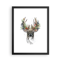 Bild auf Leinwand - Leinwandbild - Stilisierter Hirsch mit dekorativem Geweih auf weißem Hintergrund - 100x70cm - Im festlichen Gewand - Moderne Wanddekoration für Wohnzimmer und Schlafzimmer ARTTOR