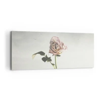Bild auf Leinwand - Leinwandbild - Eine zarte Rose vor einem hellen Himmel mit fliegenden Vögeln - 160x50cm - Begrüßung des Frühlings - Moderne Wanddekoration für Wohnzimmer und Schlafzimmer ARTTOR